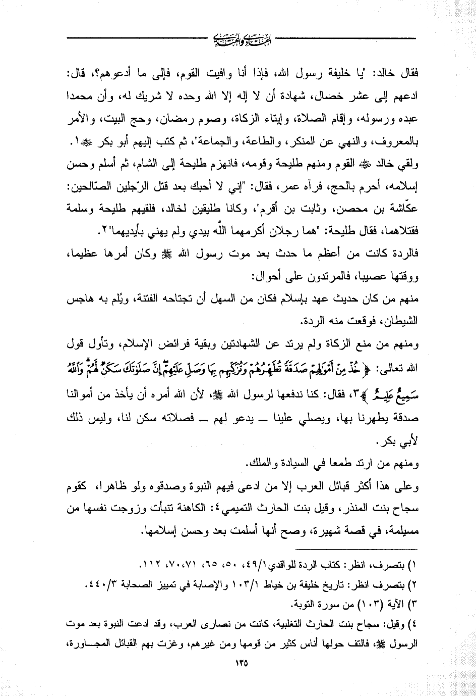 (¬1) بتصرف، انظر: كتاب الردة للواقدي 1/ 49، 50، 65، 70، 71، 112.