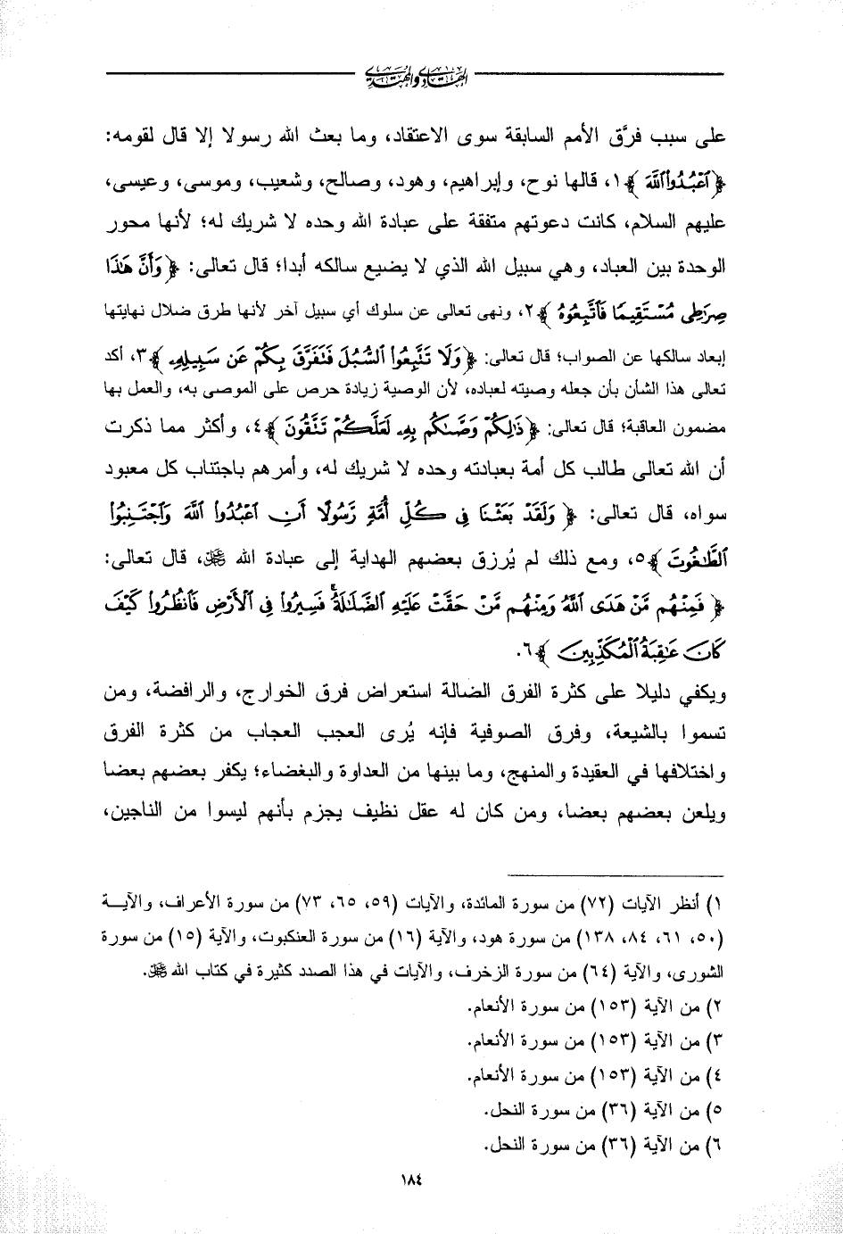 (¬1) أنظر الآيات (72) من سورة المائدة، والآيات (59، 65، 73) من سورة الأعراف، والآية (50، 61، 84، 138) من سورة هود، والآية (16) من سورة العنكبوت، والآية (15) من سورة الشورى، والآية (64) من سورة الزخرف، والآيات في هذا الصدد كثيرة في كتاب الله - عز وجل - ..
