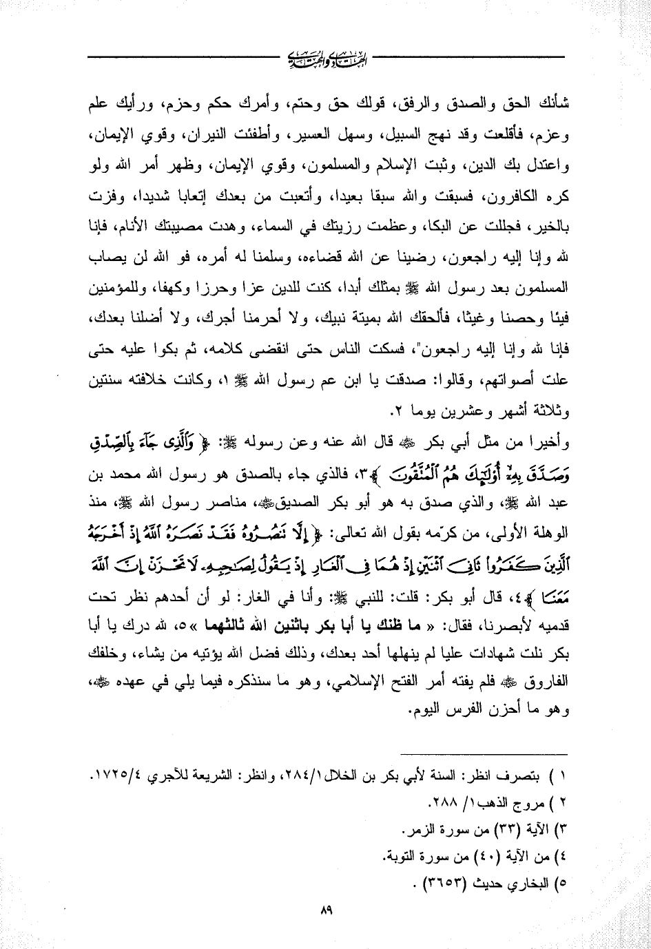 (¬1) بتصرف انظر: السنة لأبي بكر بن الخلال 1/ 284، وانظر: الشريعة للآجري 4/ 1725.