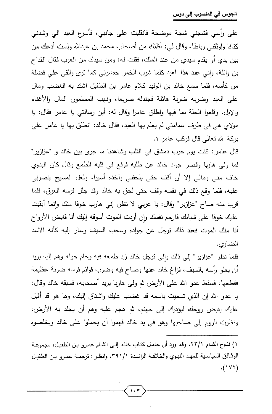 (¬1) فتوح الشام 1/ 23، وقد ورد أن حامل كتاب خالد إلى الشام عمرو بن الطفيل، مجموعة الوثائق السياسية للعهد النبوي والخلافة الراشدة 1/ 391، وانظر: ترجمة عمرو بن الطفيل (172).