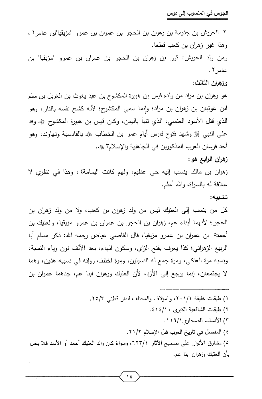 (¬5) مشارق الأنوار على صحيح الآثار 1/ 623، وسواءً كان والد العتيك أحمد أو الأسد فلا يخل بأن العتيك وزهران ابنا عم.