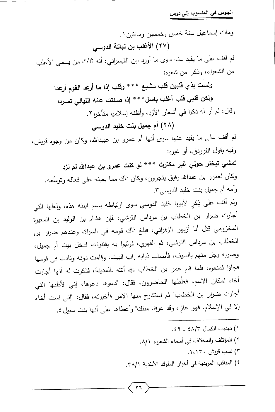 وقال: لم أر له ذكرا في أشعار الأزد، وأظنه إسلاميا متأخرا (¬2).