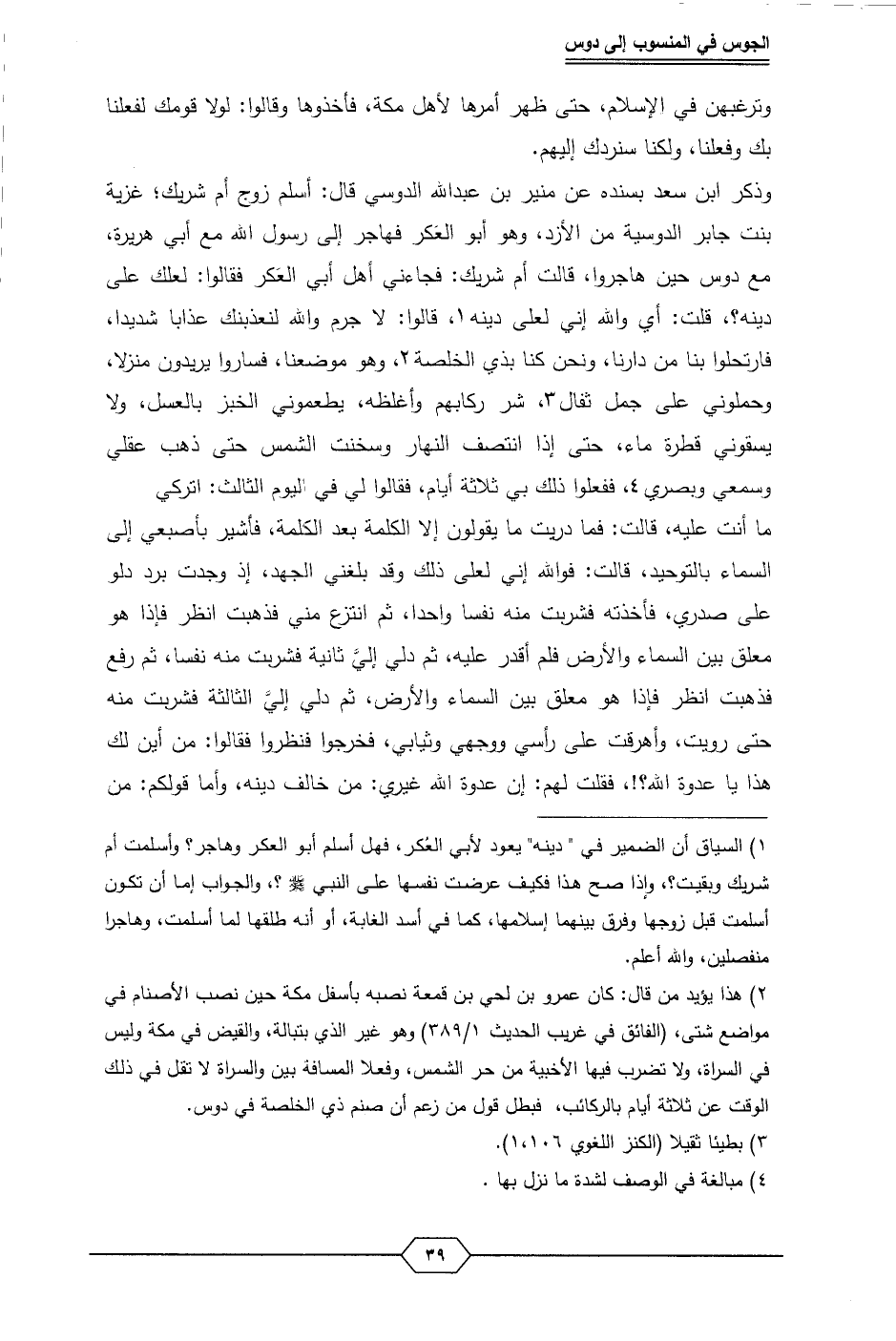(¬1) السياق أن الضمير في " دينه" يعود لأبي العُكر، فهل أسلم أبو العكر وهاجر؟ وأسلمت أم شريك وبقيت؟ ، وإذا صح هذا فكيف عرضت نفسها على النبي - صلى الله عليه وسلم -؟ ، والجواب إما أن تكون أسلمت قبل زوجها وفرق بينهما إسلامها، كما في أسد الغابة، أو أنه طلقها لما أسلمت، وهاجرا منفصلين، والله أعلم.
