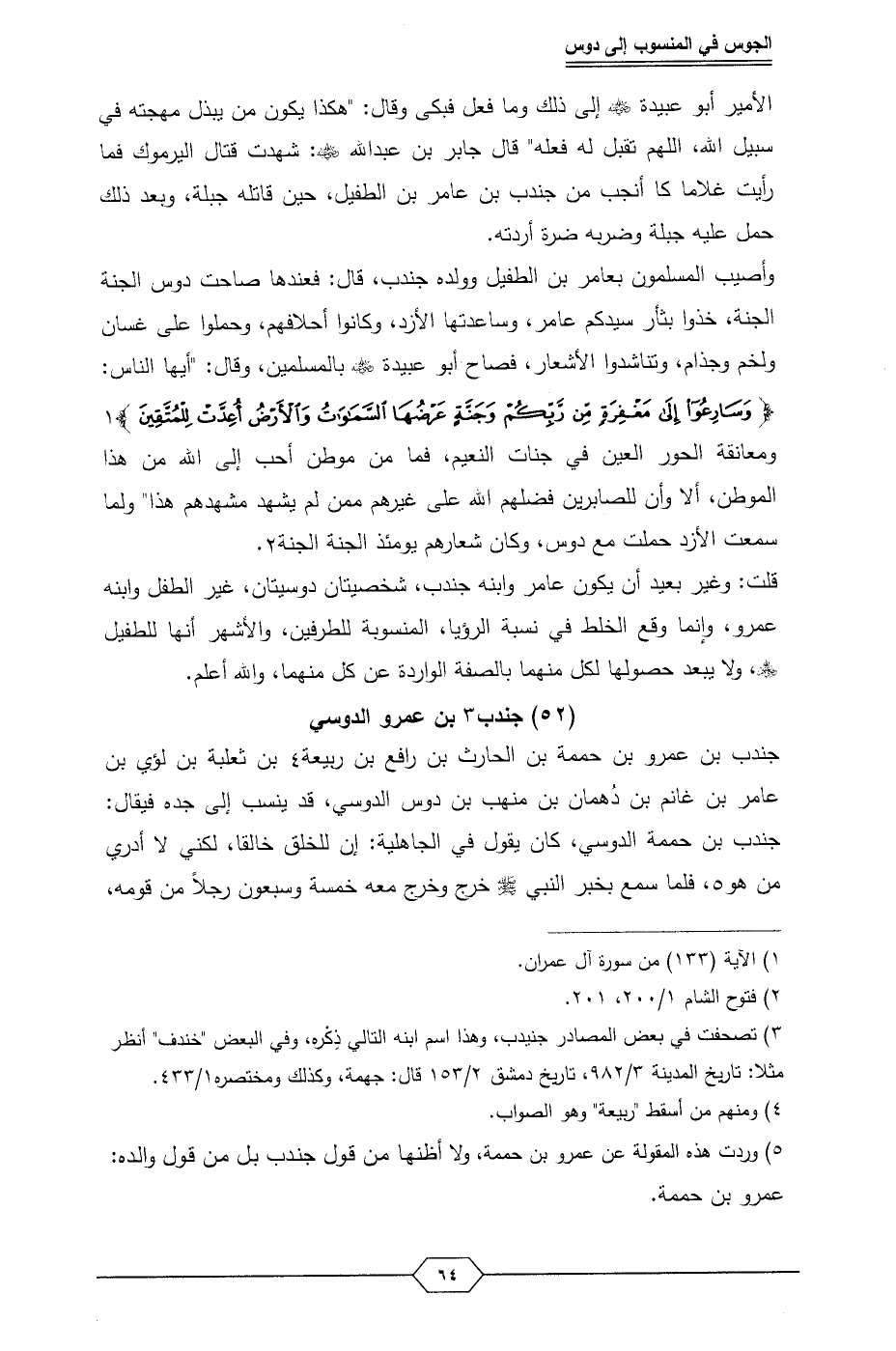 (¬3) تصحفت في بعض المصادر جنيدب، وهذا اسم ابنه التالي ذِكْره، وفي البعض "خندف" أنظر مثلا: تاريخ المدينة 3/ 982، تاريخ دمشق 2/ 153 قال: جهمة، وكذلك ومختصره 1/ 433.