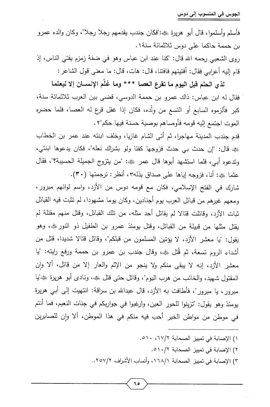 فأسلم وأسلموا، قال أبو هريرة - رضي الله عنه -: "فكان جندب يقدمهم رجلا رجلا"، وكان والده عمرو بن حممة حاكما على دوس ثلاثمائة سنة (¬1).