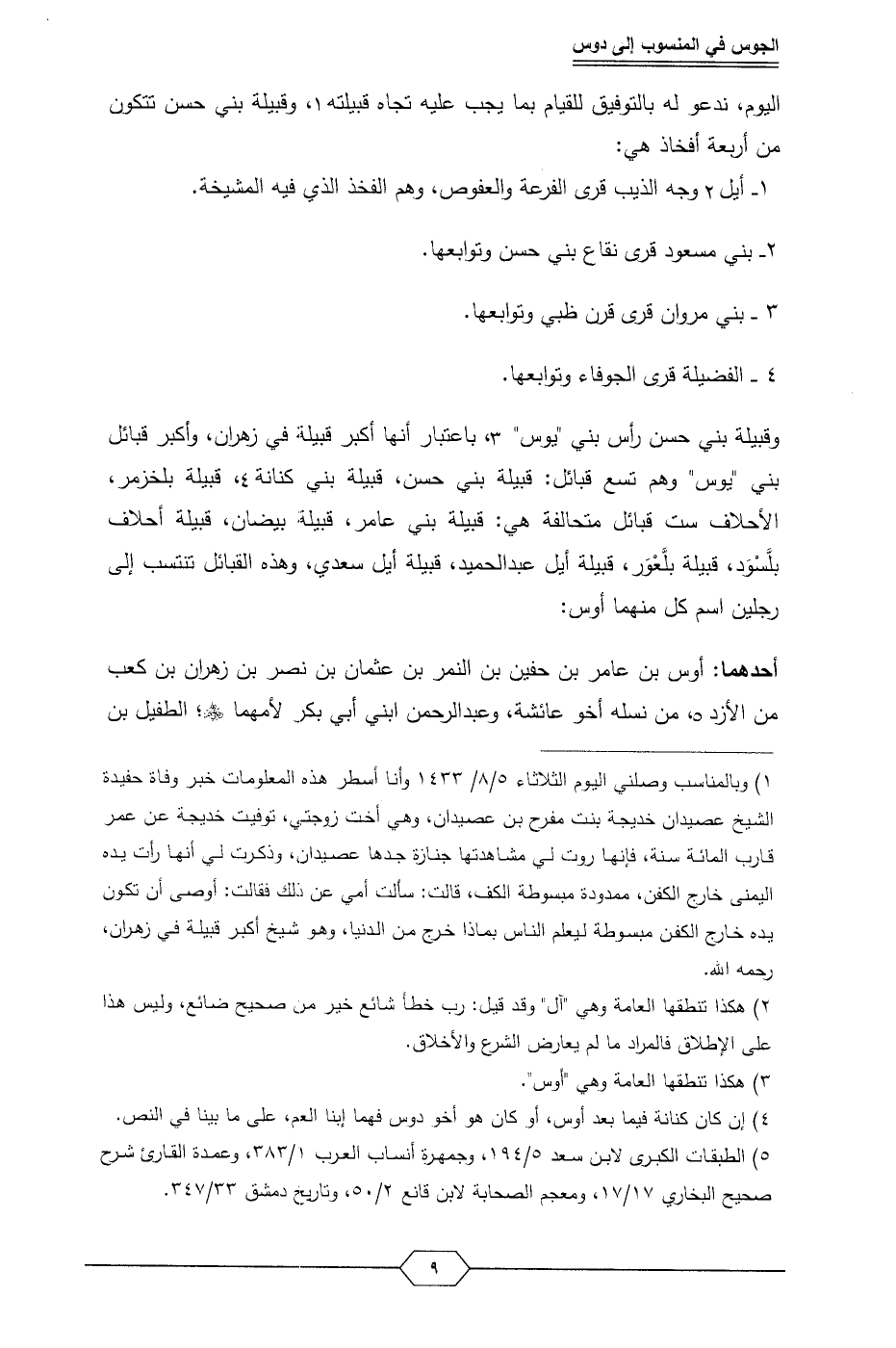 (¬4) إن كان كنانة فيما بعد أوس، أو كان هو أخو دوس فهم أبنا العم، على ما بينا في النص.