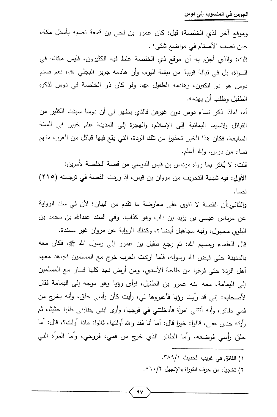 قلت: لا يُغتر بما رواه مرداس بن قيس الدوسي من قصة الخلصة لأمرين: