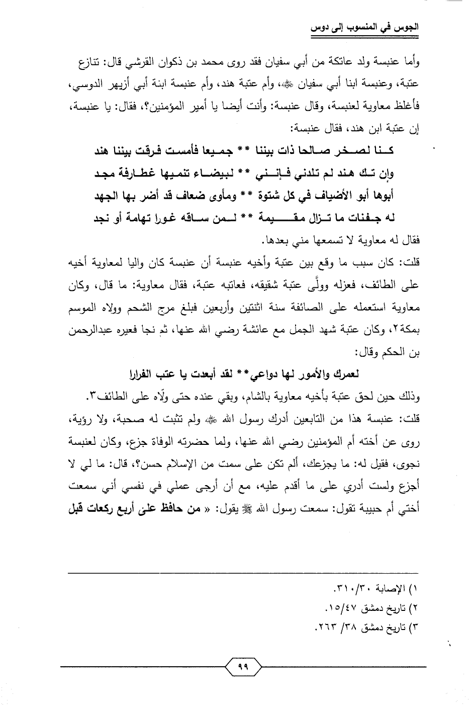 قلت: كان سبب ما وقع بين عتبة وأخيه عنبسة أن عنبسة كان واليا لمعاوية أخيه على الطائف، فعزله وولَّى عتبة شقيقه، فعاتبه عتبة، فقال معاوية: ما قال، وكان معاوية استعمله على الصائفة سنة اثنتين وأربعين فبلغ مرج الشحم وولاه الموسم بمكة (¬1)، وكان عتبة شهد الجمل مع عائشة رضي الله عنها، ثم نجا فعيره عبد الرحمن بن الحكم وقال: