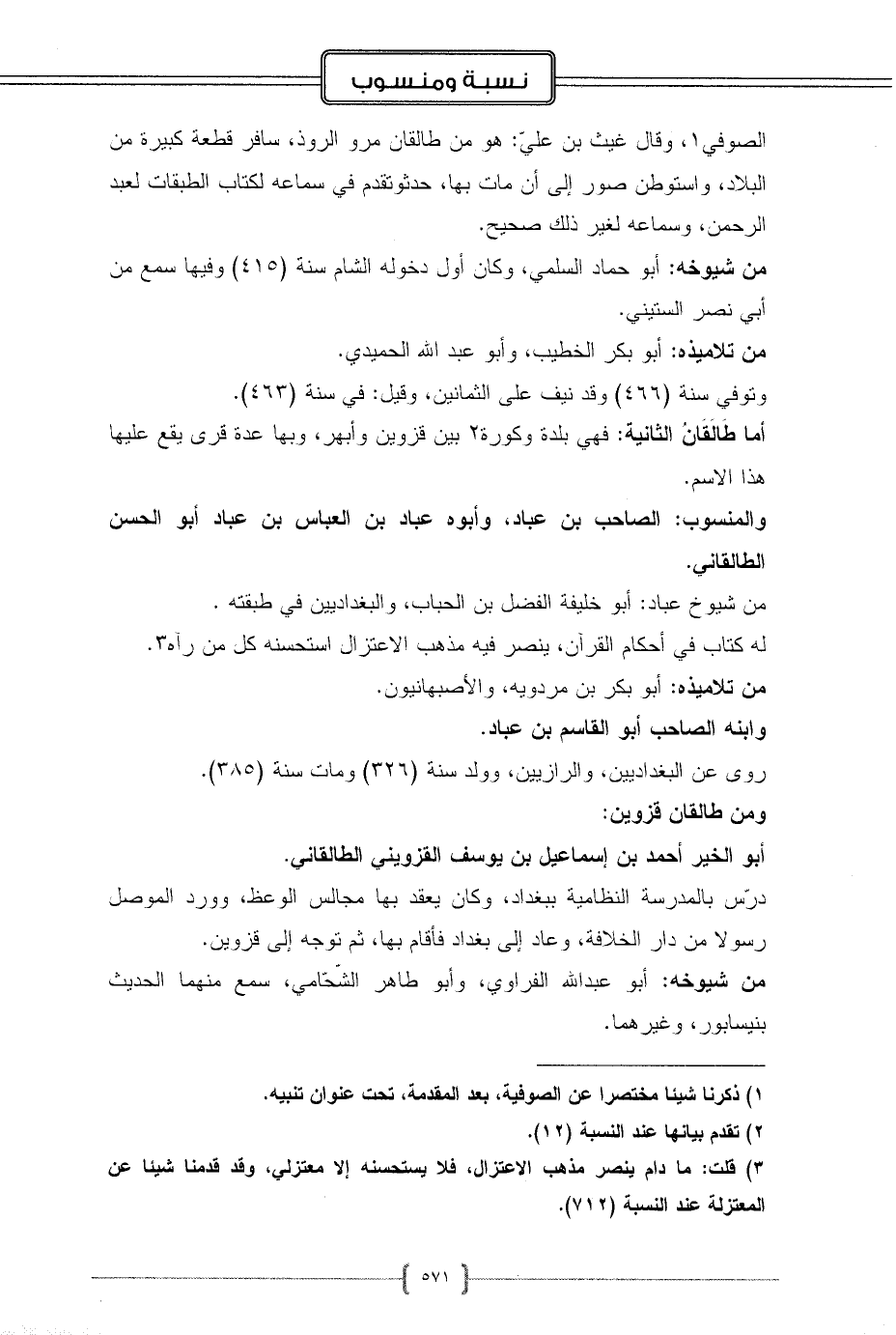 والمنسوب: الصاحب بن عباد، وأبوه عباد بن العباس بن عباد أبو الحسن الطالقاني.