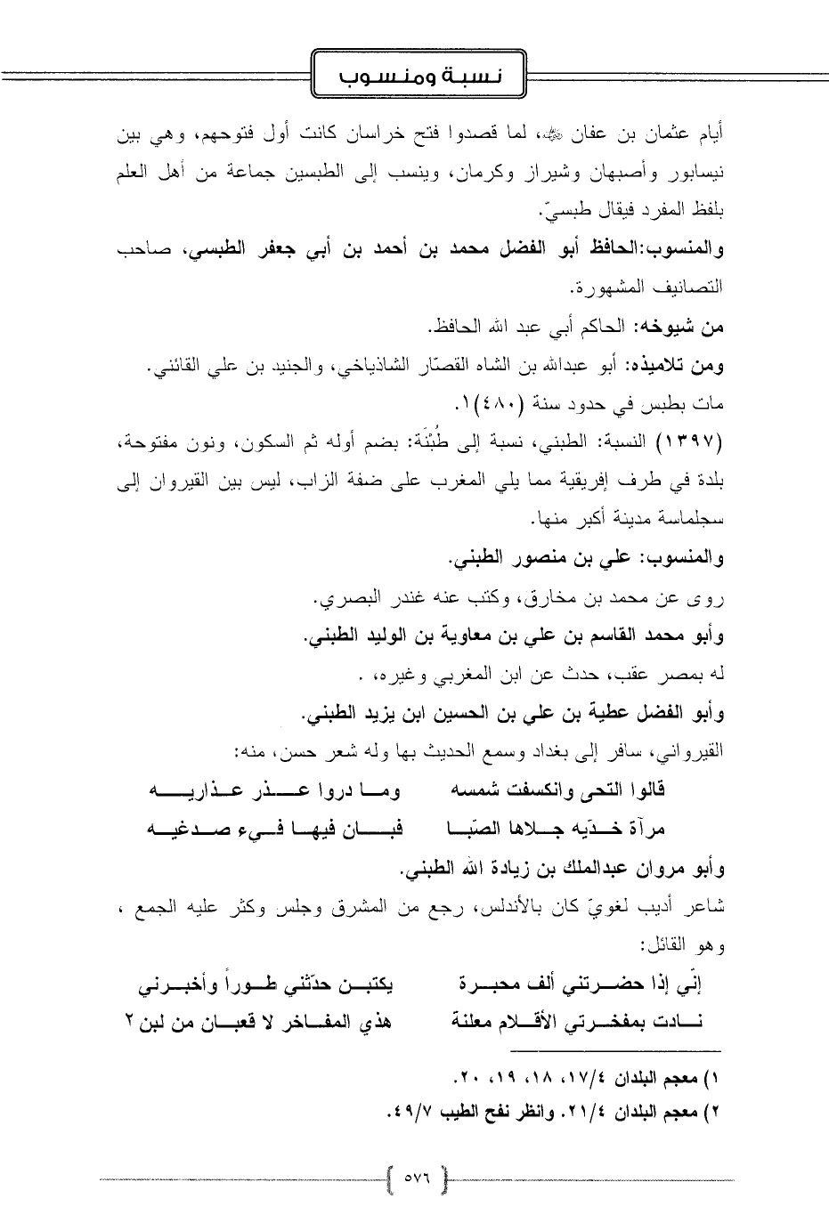 (1397) النسبة: الطبني، نسبة إلى طُبْنَة: بضم أوله ثم السكون، ونون مفتوحة، بلدة في طرف إفريقية مما يلي المغرب على ضفة الزاب، ليس بين القيروان إلى سجلماسة مدينة أكبر منها.