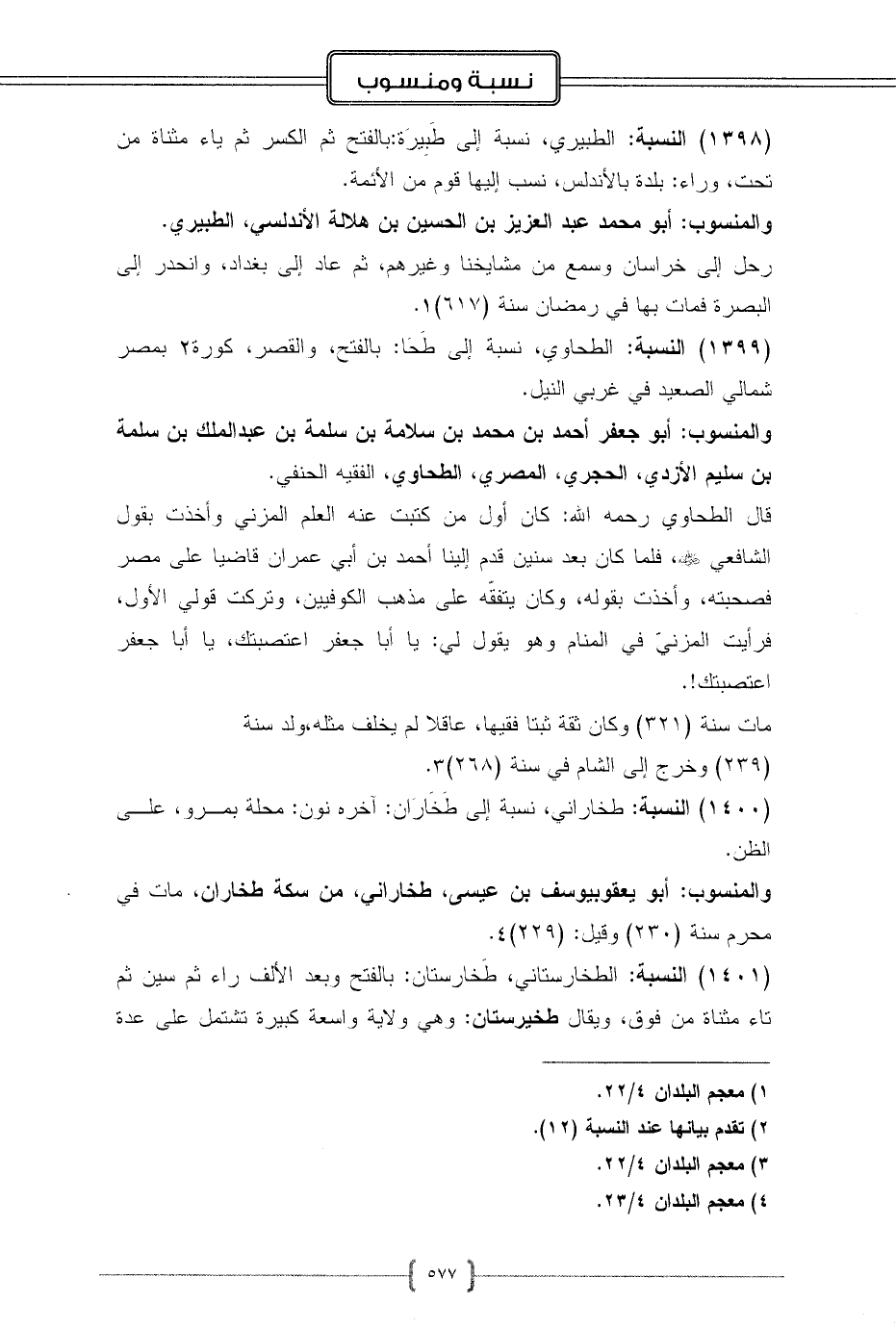 (1399) النسبة: الطحاوي، نسبة إلى طَحَا: بالفتح، والقصر، كورة (¬2) بمصر شمالي الصعيد في غربي النيل.