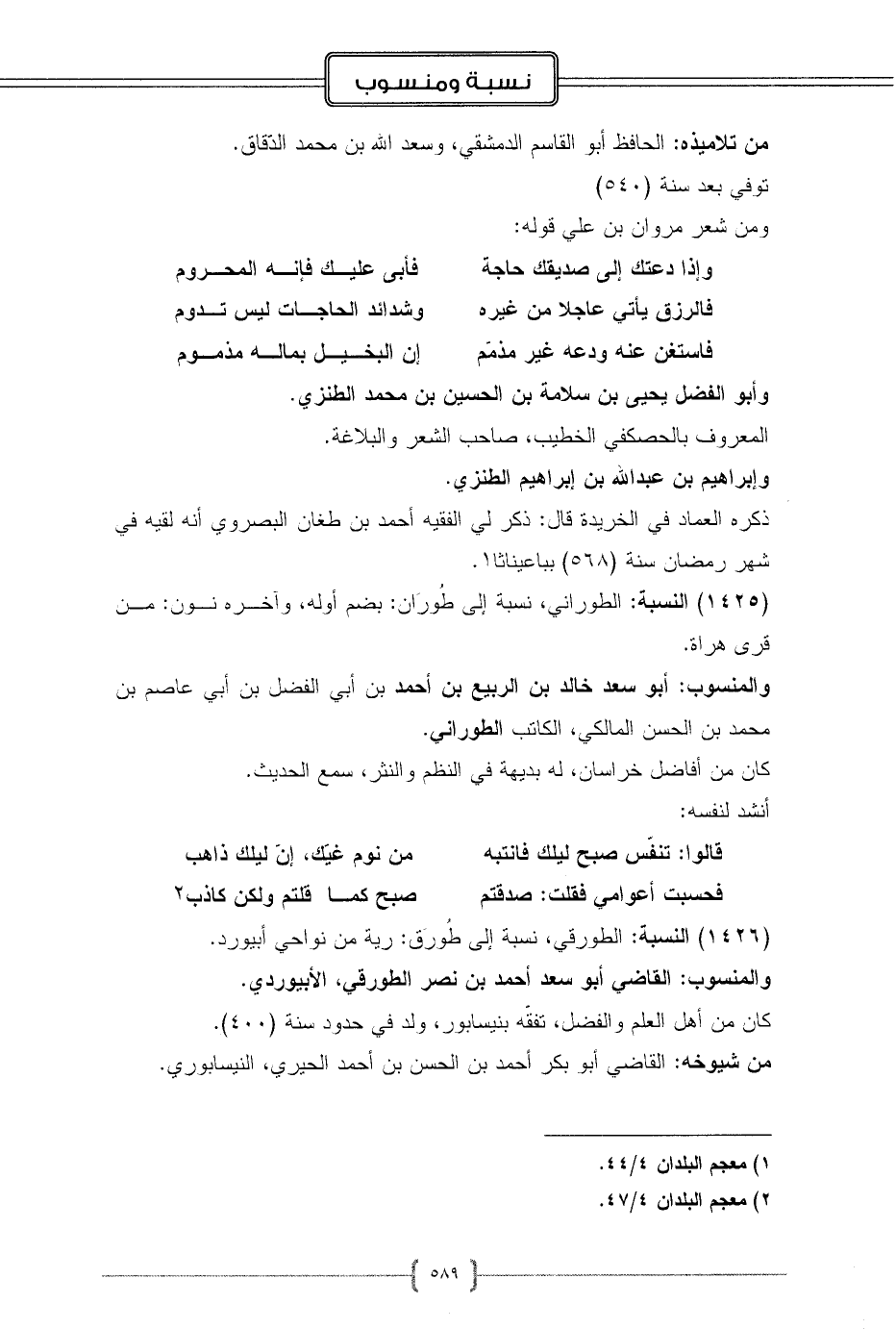 (1426) النسبة: الطورقي، نسبة إلى طُورَق: رية من نواحي أبيورد.