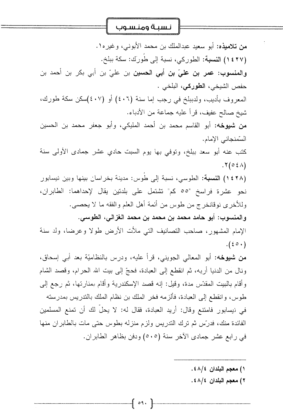 والمنسوب: أبو حامد محمد بن محمد بن محمد الغزالي، الطوسي.