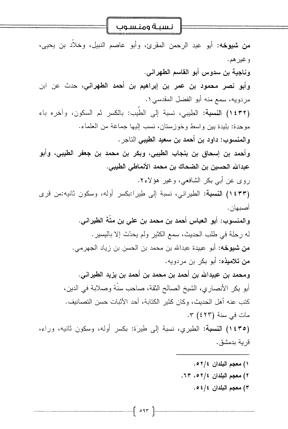 (1433) النسبة: الطيراني، نسبة إلى طِيرَا: بكسر أوله، وسكون ثانيه: من قرى أصبهان.