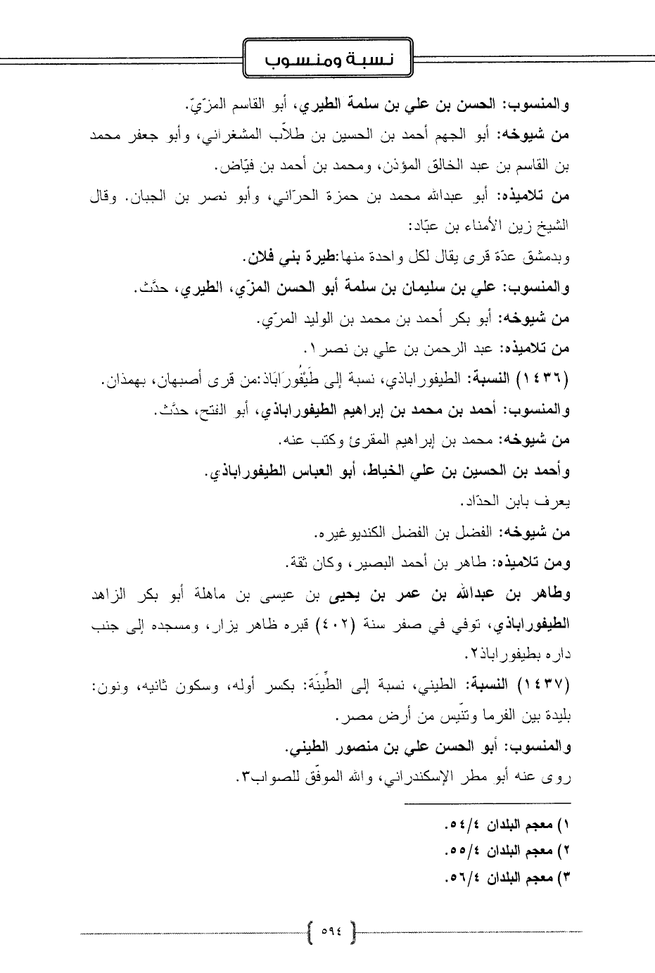 (1436) النسبة: الطيفوراباذي، نسبة إلى طَيْفُورَابَاذ: من قرى أصبهان، بهمذان.
