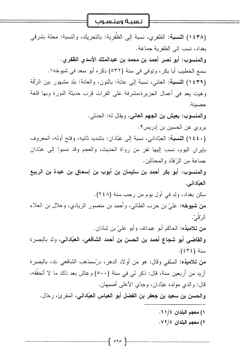 (1438) النسبة: الظفري، نسبة إلى الظَّفَرِية: بالتحريك، والنسبة: محلة بشرقي بغداد، نسب إلى الظفرية جماعة.