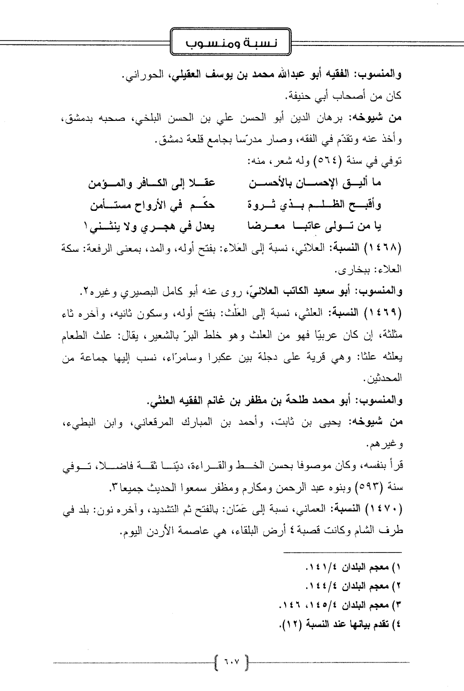 (1470) النسبة: العماني، نسبة إلى عَمّان: بالفتح ثم التشديد، وآخره نون: بلد في طرف الشام وكانت قصبة (¬4) أرض البلقاء، هي عاصمة الأردن اليوم.