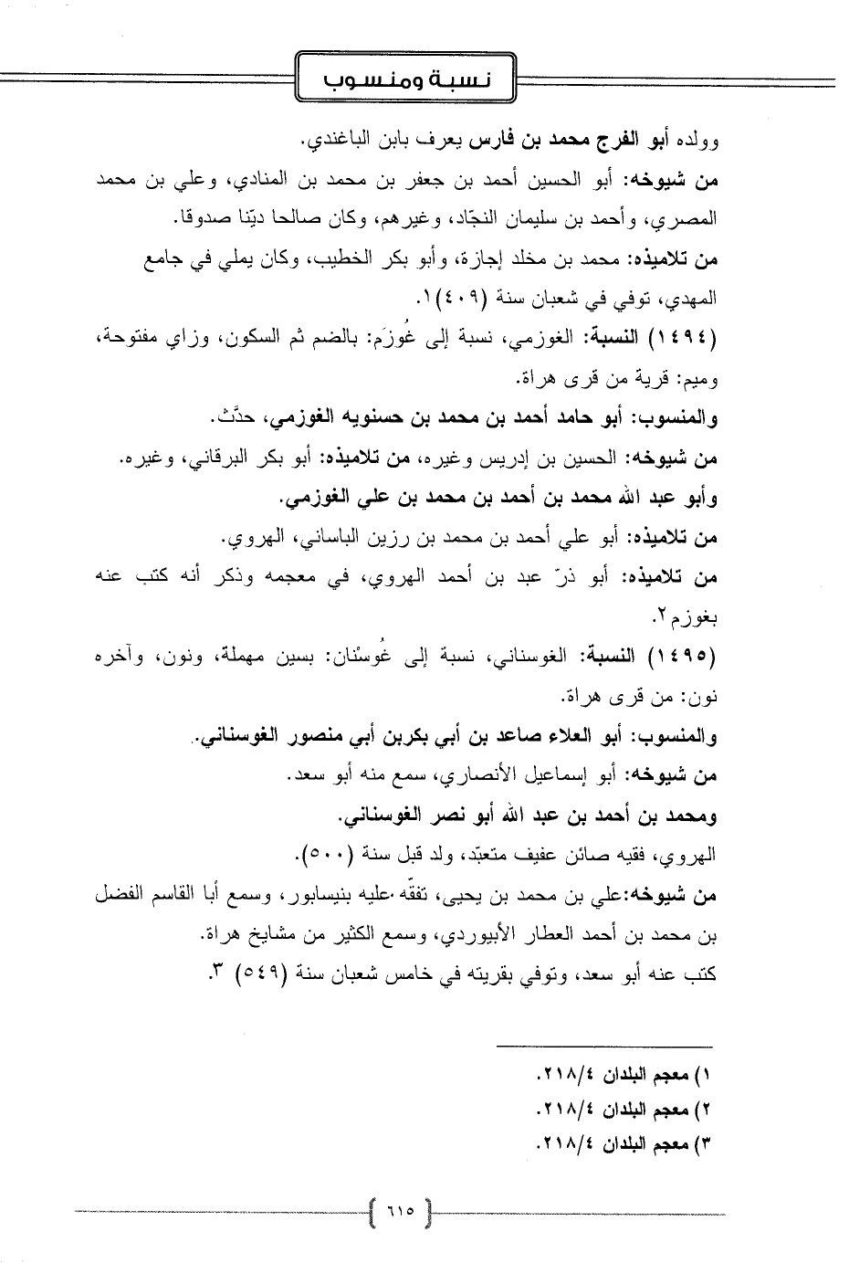 (1495) النسبة: الغوسناني، نسبة إلى غُوسْنان: بسين مهملة، ونون، وآخره نون: من قرى هراة.