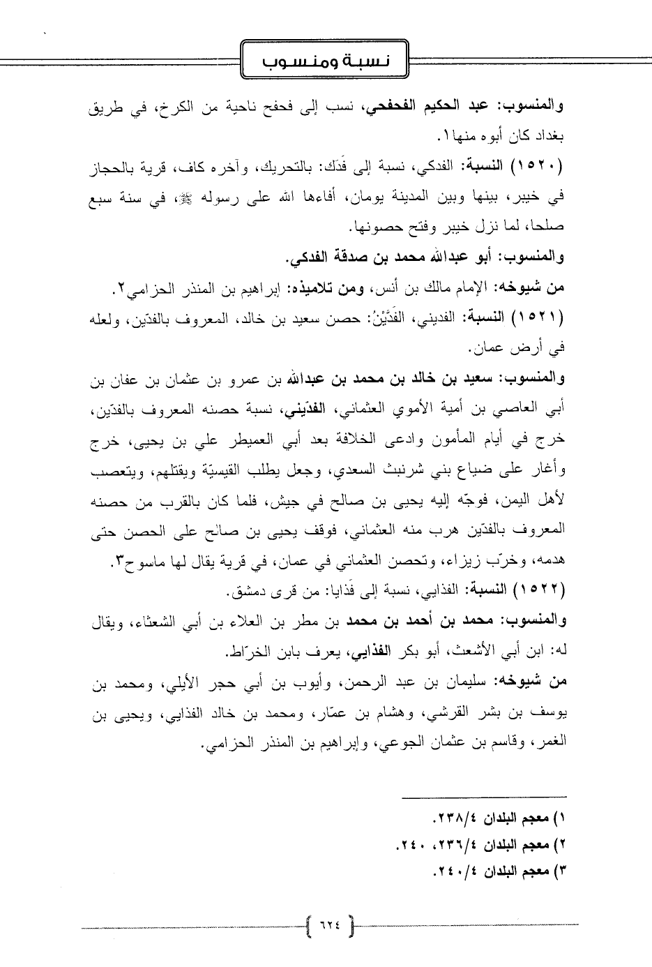 (1521) النسبة: الفديني، الفَدَّيْنُ: حصن سعيد بن خالد، المعروف بالفدّين، ولعله في أرض عمان.