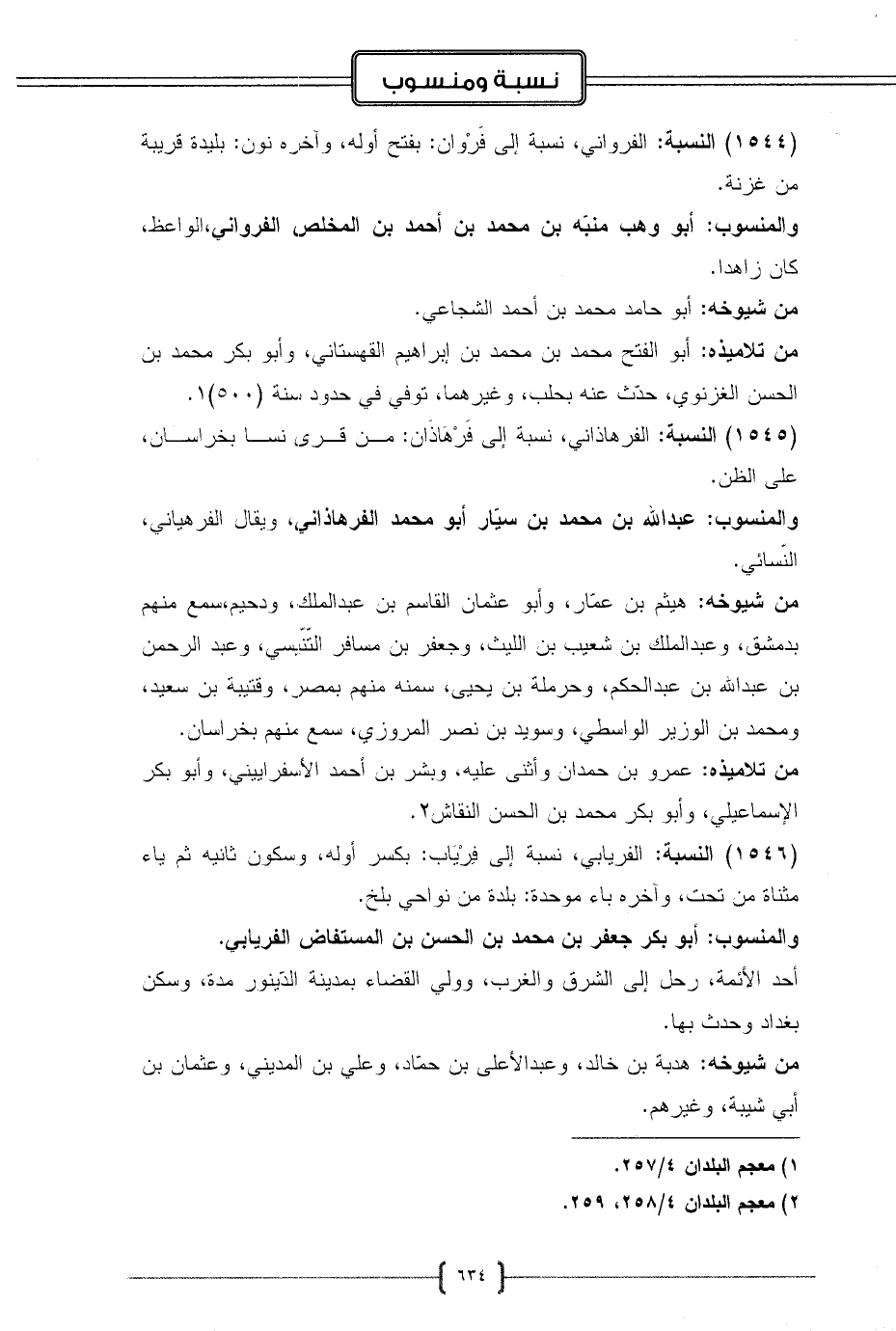 (1545) النسبة: الفرهاذاني، نسبة إلى فَرْهَاذَان: من قرى نسا بخراسان، على الظن.