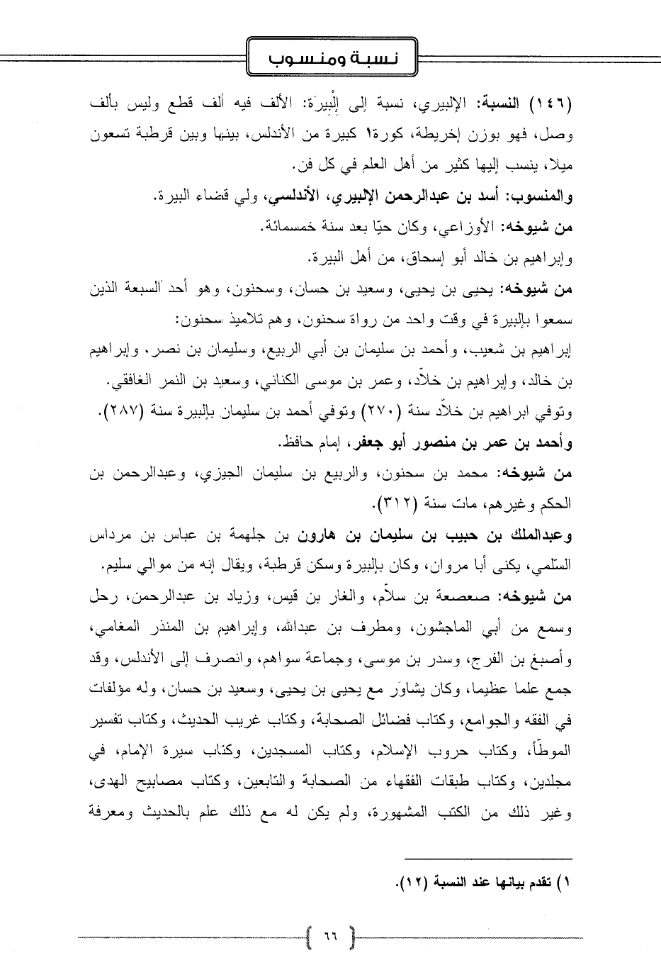 والمنسوب: أسد بن عبد الرحمن الإلبيري، الأندلسي، ولي قضاء البيرة. من شيوخه: الأوزاعي، وكان حيّا بعد سنة خمسمائة.