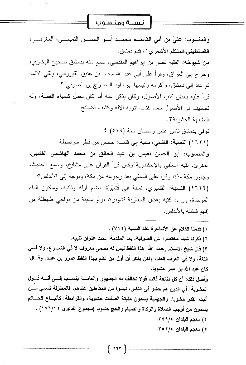 (1622) النسبة: القشبري، نسبة إلى قُشُبْرَة: بضم أوله وثانيه، وسكون الباء الموحدة، وراء، كتبه بعض المغاربة قشوبرة، بوأو مدينة من نواحي طليطلة من إقليم ششلة بالأندلس.
