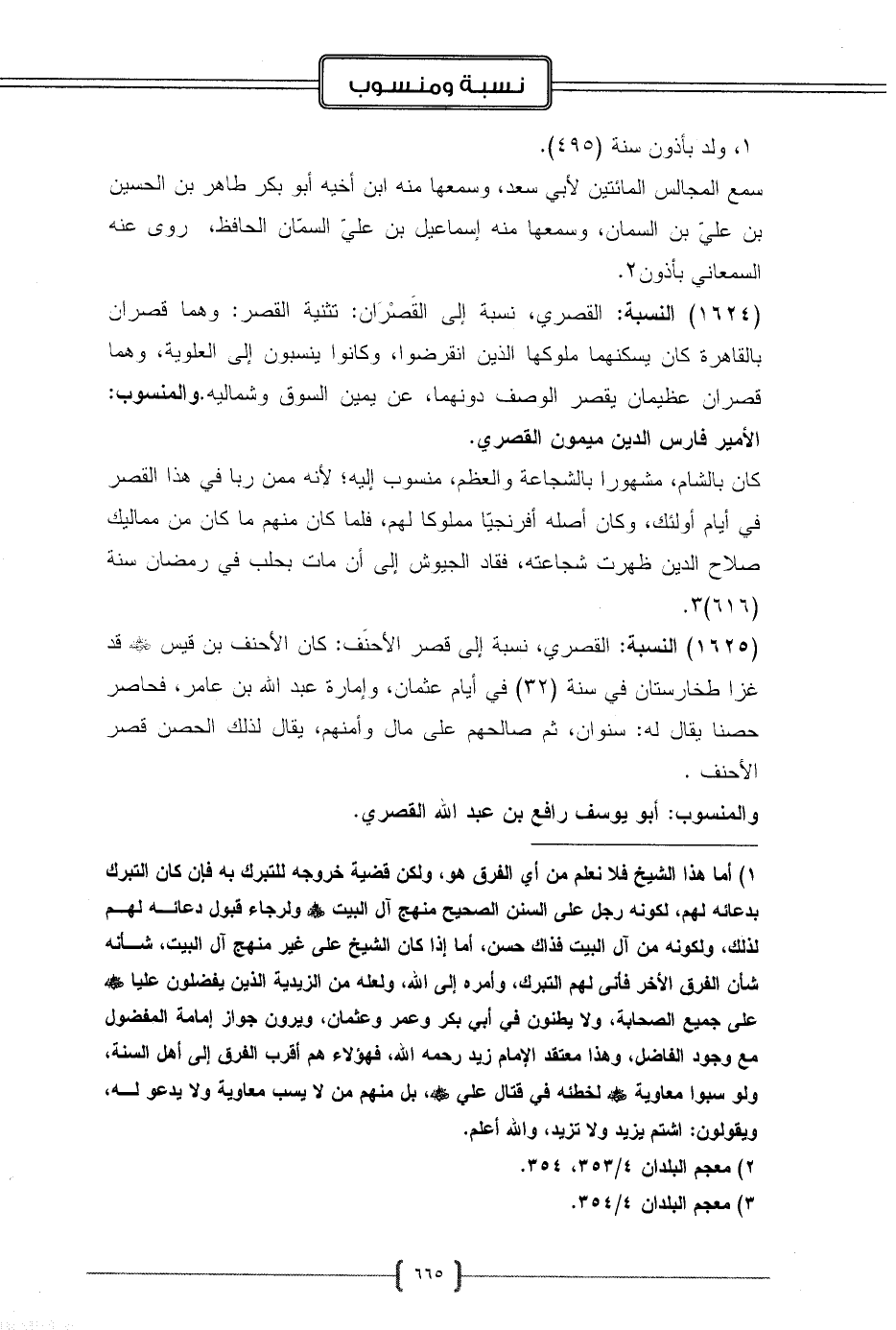 (1625) النسبة: القصري، نسبة إلى قصر الأحنَف: كان الأحنف بن قيس - رضي الله عنه - قد غزا طخارستان في سنة (32) في أيام عثمان، وإمارة عبد الله بن عامر، فحاصر حصنا يقال له: سنوان، ثم صالحهم على مال وأمنهم، يقال لذلك الحصن قصر الأحنف.