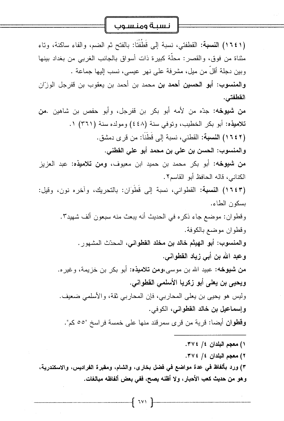 (1643) النسبة: القطواني، نسبة إلى قَطَوَان: بالتحريك، وآخره نون، وقيل: بسكون الطاء.