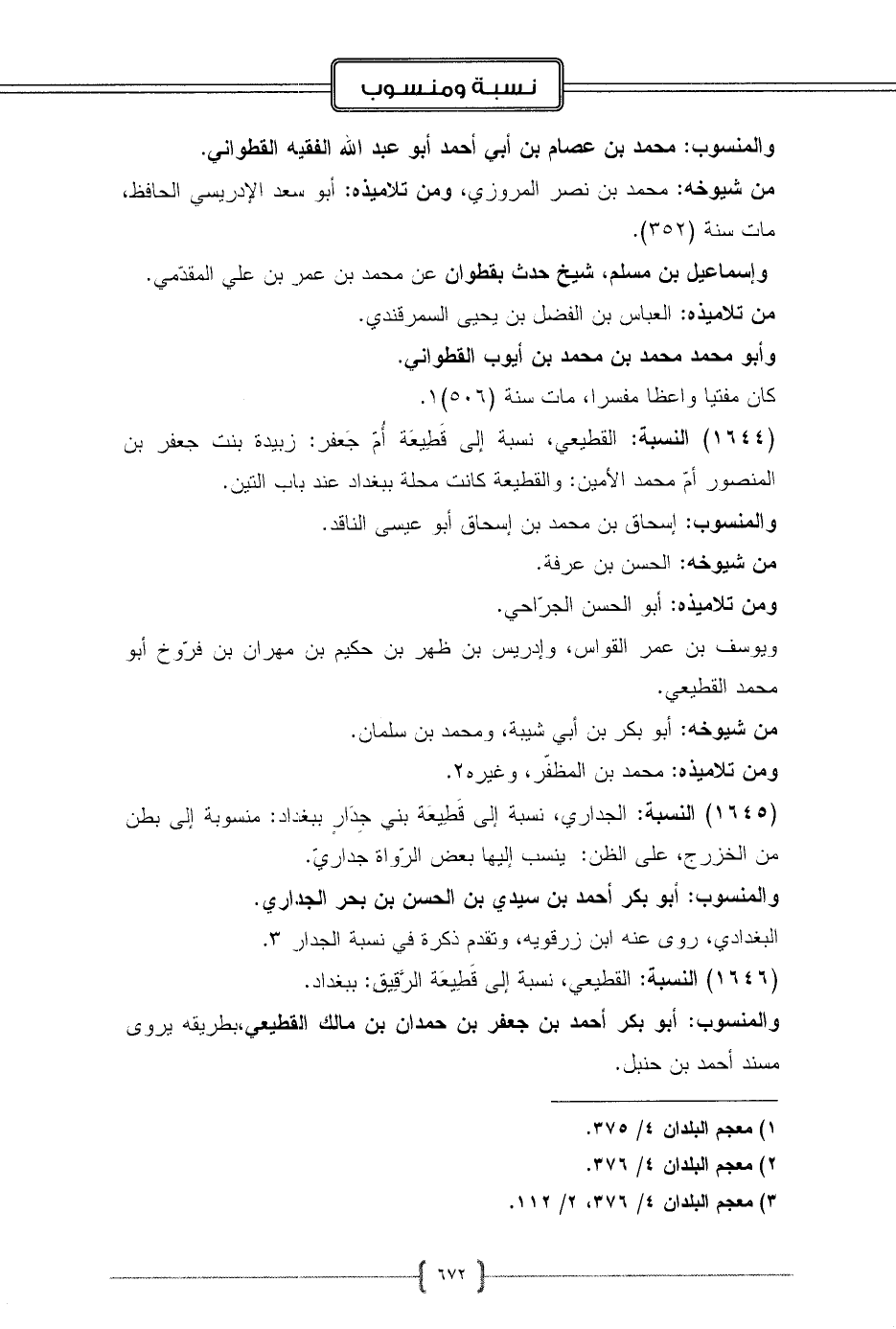 والمنسوب: أبو بكر أحمد بن جعفر بن حمدان بن مالك القطيعي، بطريقه يروى مسند أحمد بن حنبل.