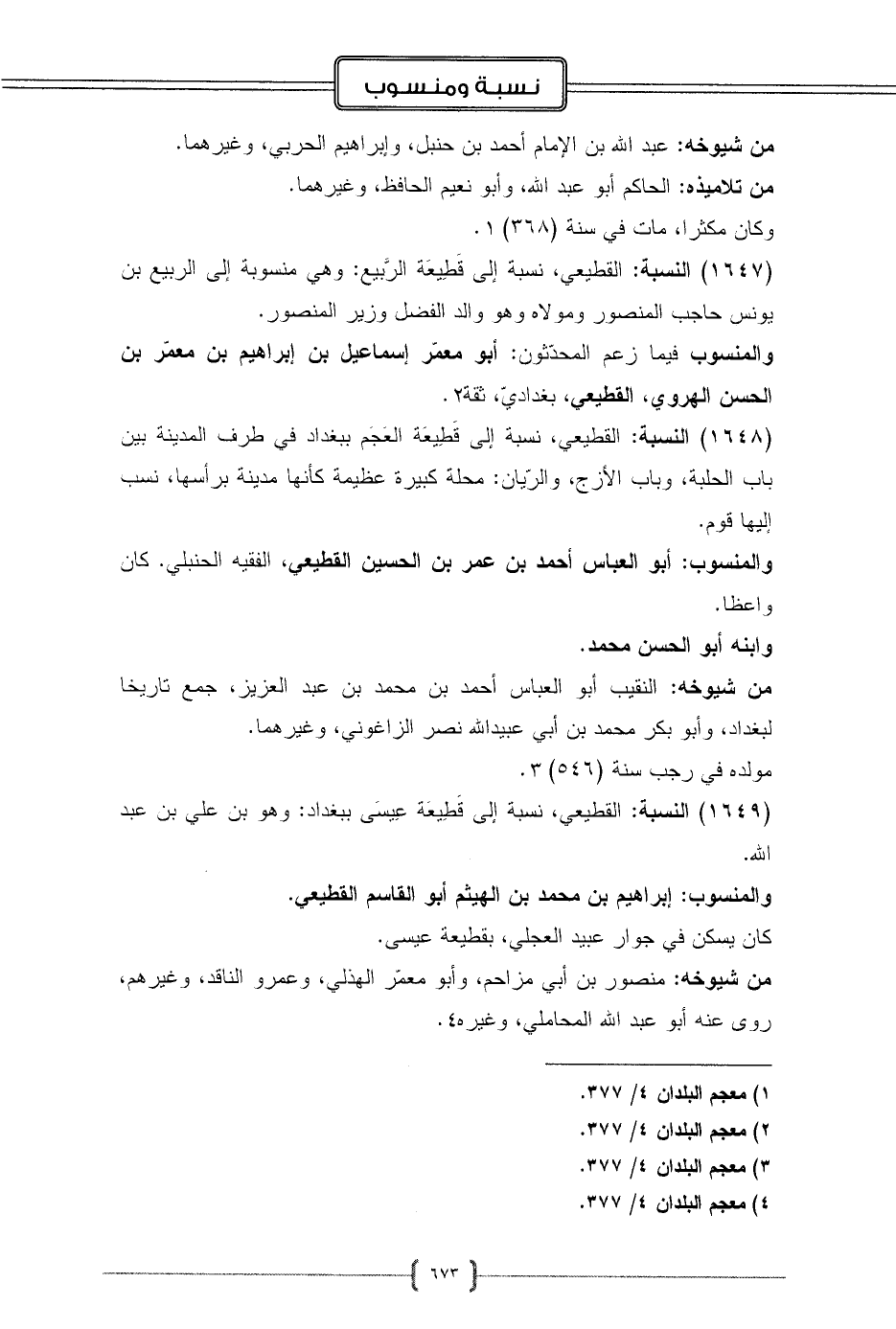 (1647) النسبة: القطيعي، نسبة إلى قَطِيعَة الرَّبيع: وهي منسوبة إلى الربيع بن يونس حاجب المنصور ومولاه وهو والد الفضل وزير المنصور.