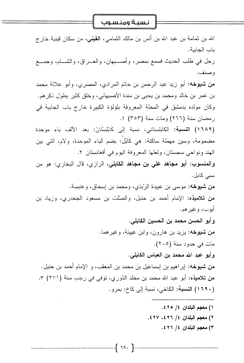 (1689) النسبة: الكابلستاني، نسبة إلى كَابُلِسْتَانُ: بعد الألف باء موحدة مضمومة، وسين مهملة ساكنة: هي كَابُلُ: بضم الباء الموحدة، ولام، التي بين الهند ونواحي سجستان، ولعلها المعروفة اليوم في أفغانستان (¬2).