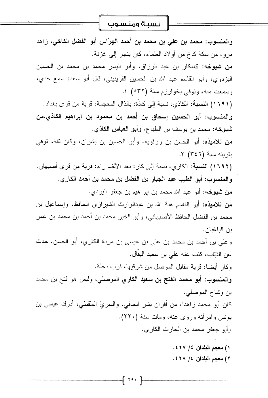 (1692) النسبة: الكاري، نسبة إلى كار: بعد الألف راء: قرية من قرى أصبهان.