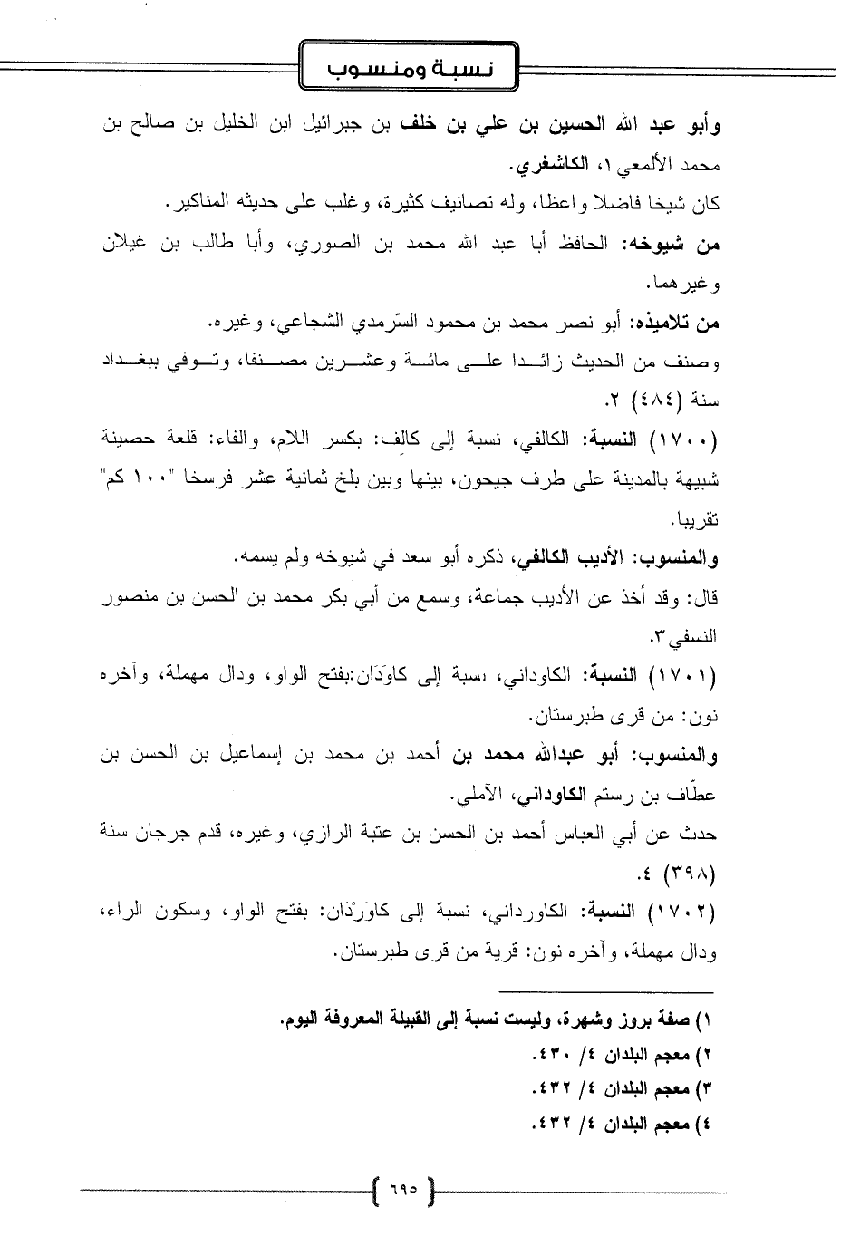 (1700) النسبة: الكالفي، نسبة إلى كالِف: بكسر اللام، والفاء: قلعة حصينة شبيهة بالمدينة على طرف جيحون، بينها وبين بلخ ثمانية عشر فرسخا "100 كم" تقريبا.
