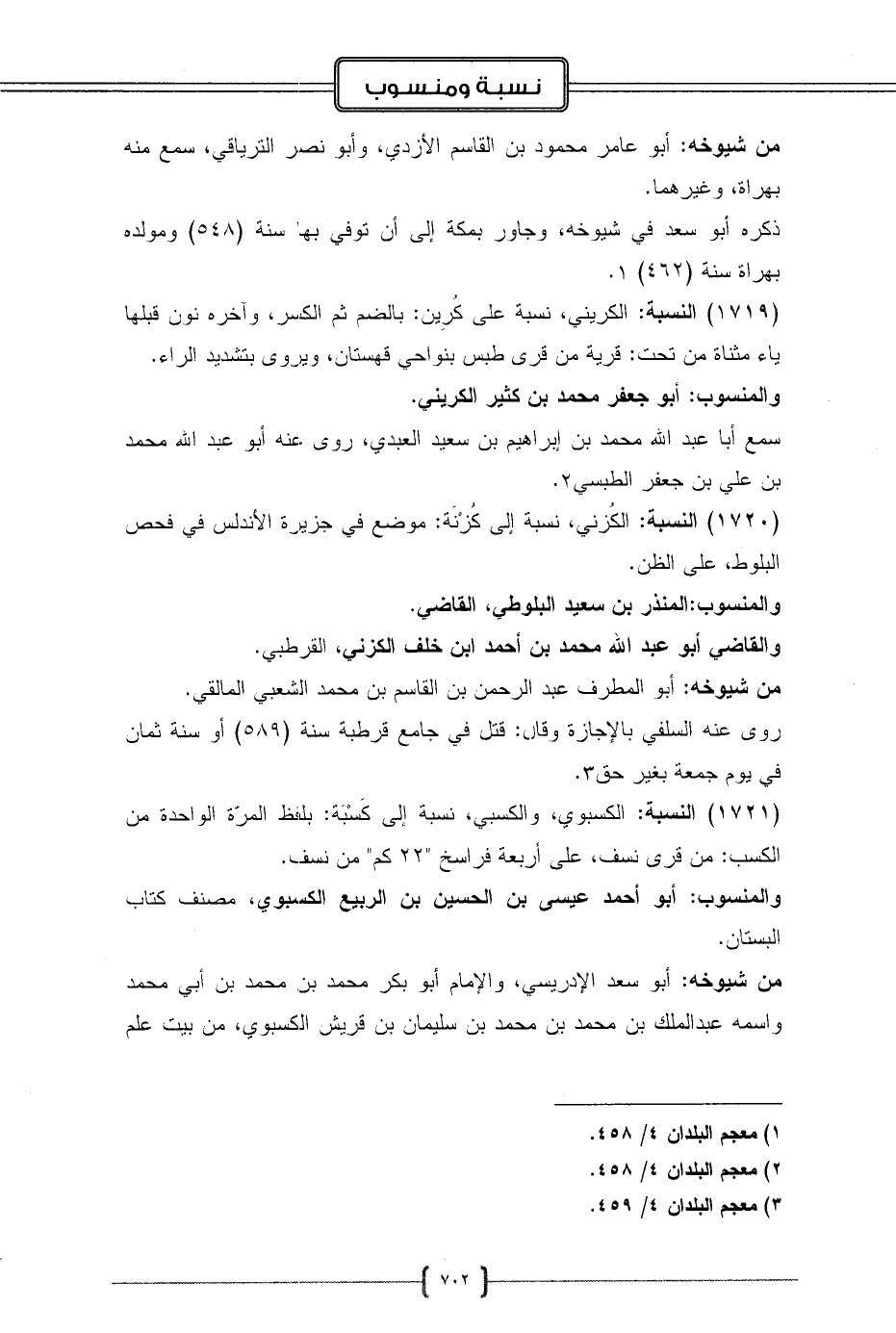 (1720) النسبة: الكُزني، نسبة إلى كُزْنَة: موضع في جزيرة الأندلس في فحص البلوط، على الظن.