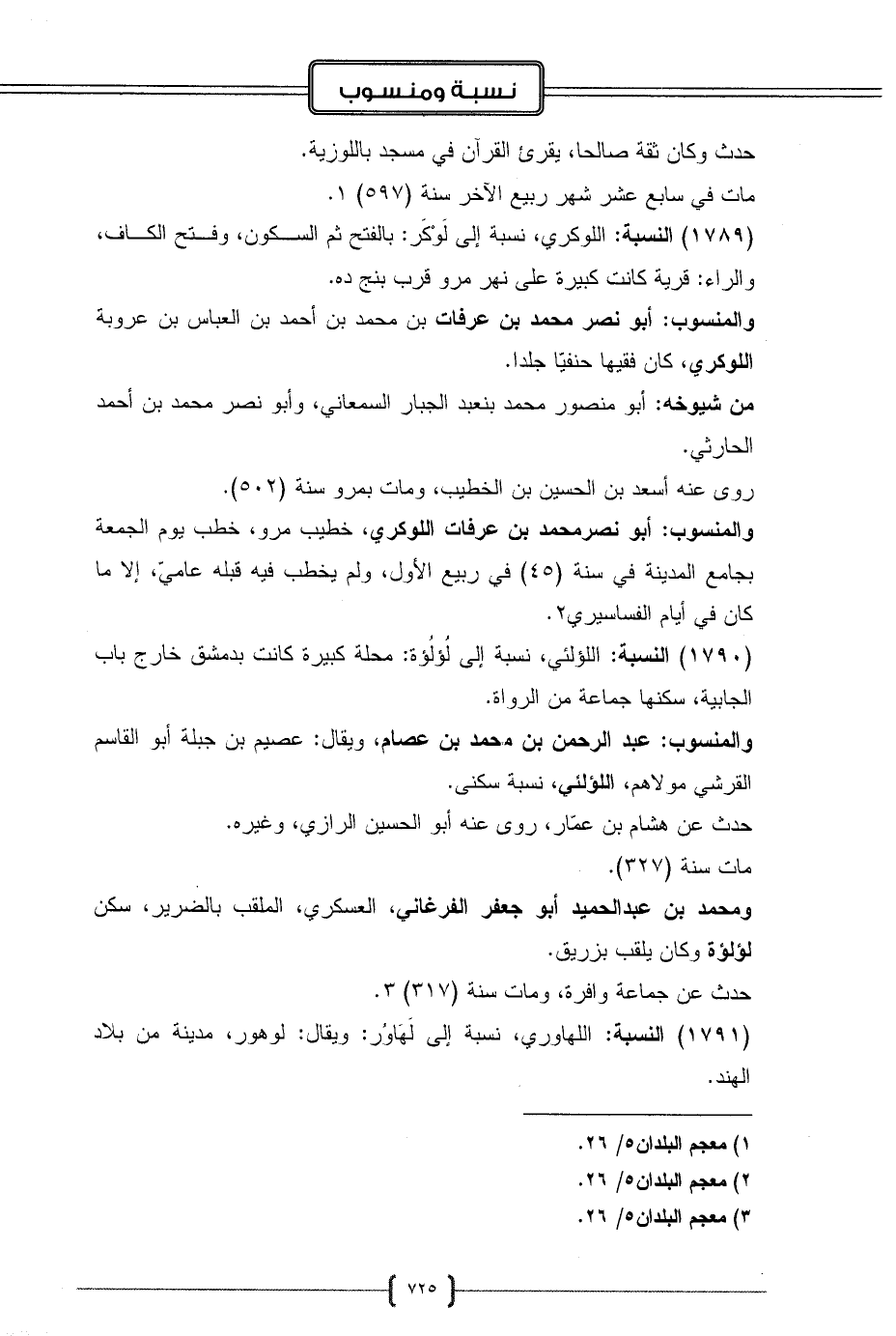 (1790) النسبة: اللؤلئي، نسبة إلى لُؤلُؤة: محلة كبيرة كانت بدمشق خارج باب الجابية، سكنها جماعة من الرواة.