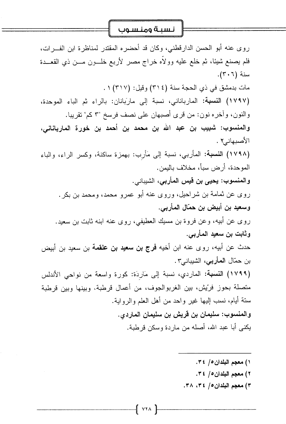 (1797) النسبة: المارباناني، نسبة إلى مارَبانان: بالراء ثم الباء الموحدة، والنون، وآخره نون: من قرى أصبهان على نصف فرسخ "3 كم" تقريبا.