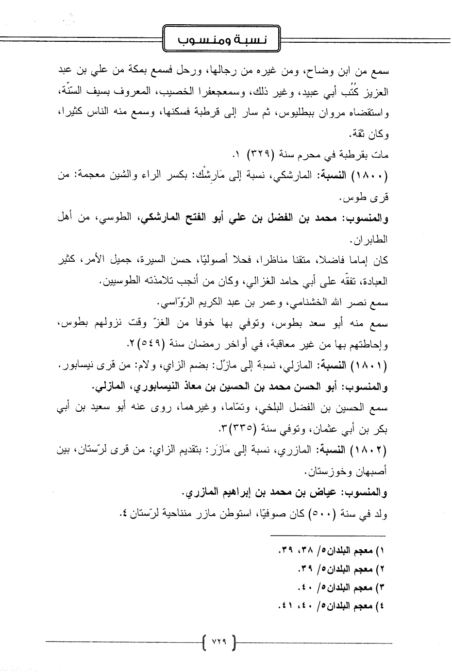 (1800) النسبة: المارشكي، نسبة إلى مَارِشْك: بكسر الراء والشين معجمة: من قرى طوس.
