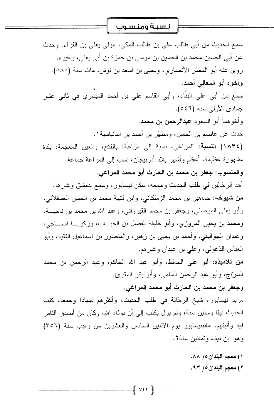 والمنسوب: جعفر بن محمد بن الحارث أبو محمد المراغي.