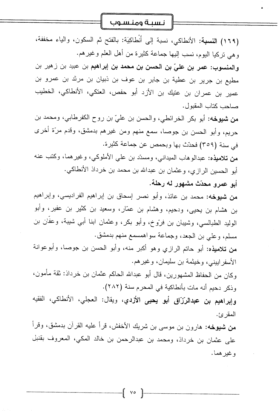 (169) النسبة: الأنطاكي، نسبة إلى أَنْطاكِيَة: بالفتح ثم السكون، والياء مخففة، وهي تركيا اليوم، نسب إليها جماعة كثيرة من أهل العلم وغيرهم.