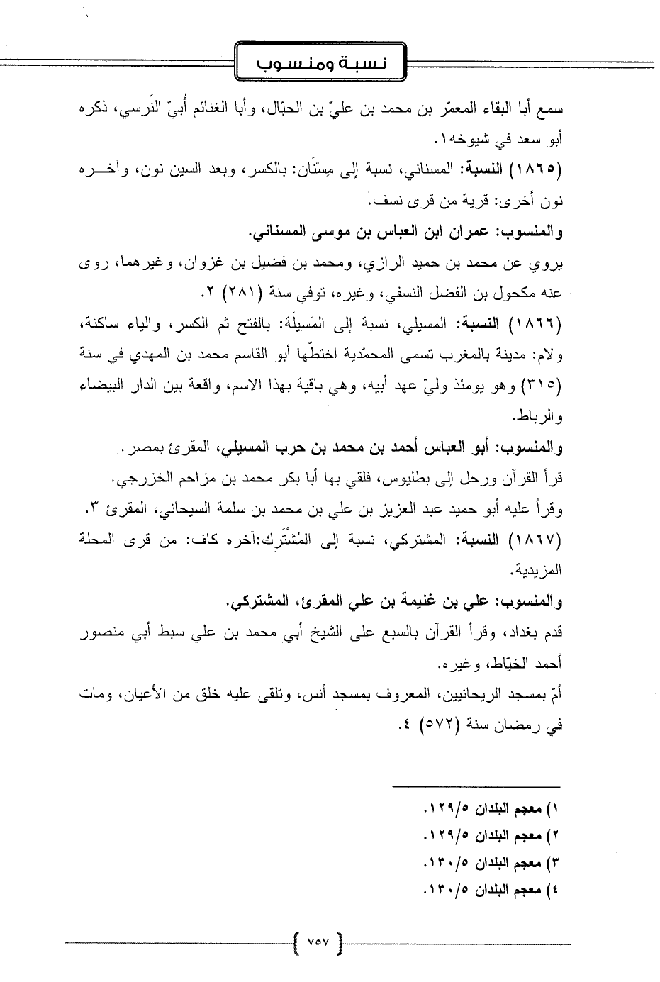 (1865) النسبة: المسناني، نسبة إلى مِسْنَان: بالكسر، وبعد السين نون، وآخره نون أخرى: قرية من قرى نسف.