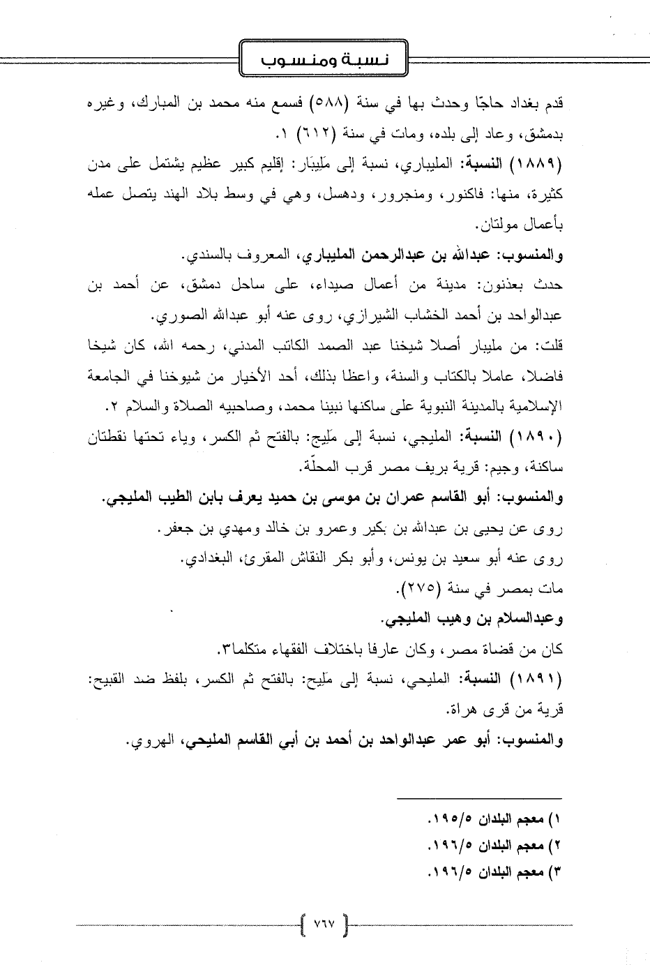 (1891) النسبة: المليحي، نسبة إلى مَلِيح: بالفتح ثم الكسر، بلفظ ضد القبيح: قرية من قرى هراة.