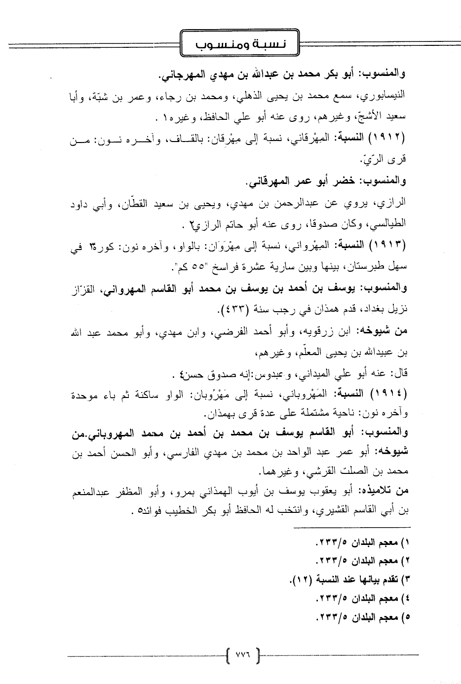 (1912) النسبة: المِهْرقاني، نسبة إلى مِهْرِقان: بالقاف، وآخره نون: من قرى الرّيّ.
