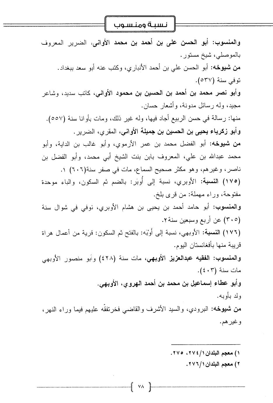 (176) النسبة: الأوبهي، نسبة إلى أَوْبَه: بالفتح ثم السكون: قرية من أعمال هراة قريبة منها بأفغانستان اليوم.