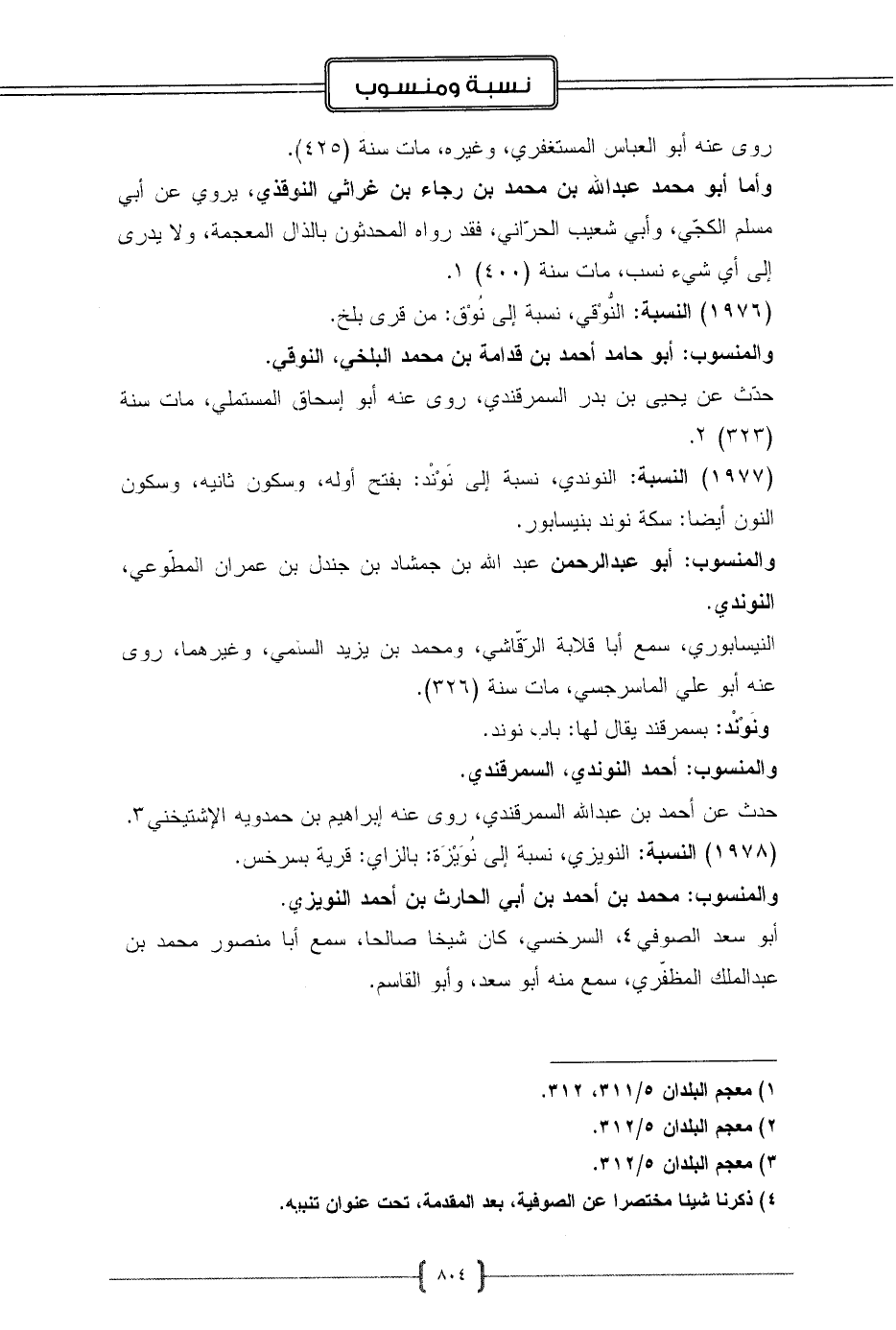 (1977) النسبة: النوندي، نسبة إلى نَوْنْد: بفتح أوله، وسكون ثانيه، وسكون النون أيضا: سكة نوند بنيسابور.