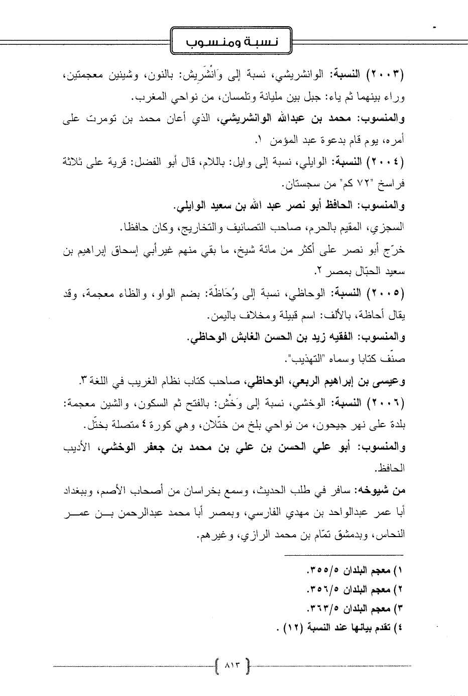 والمنسوب: محمد بن عبد الله الوانشريشي، الذي أعان محمد بن تومرت على أمره، يوم قام بدعوة عبد المؤمن (¬1).