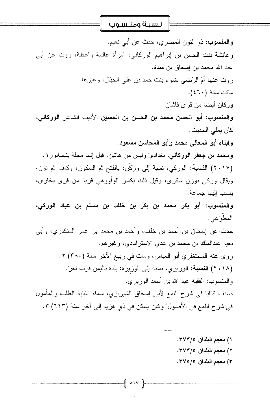 (2017) النسبة: الوركي، نسبة إلى وَرْكَن: بالفتح ثم السكون، وكاف ثم نون، ويقال وركى بوزن سكرى، وقيل ذلك بكسر الوأو وهي قرية من قرى بخارى، ينسب إليها جماعة.