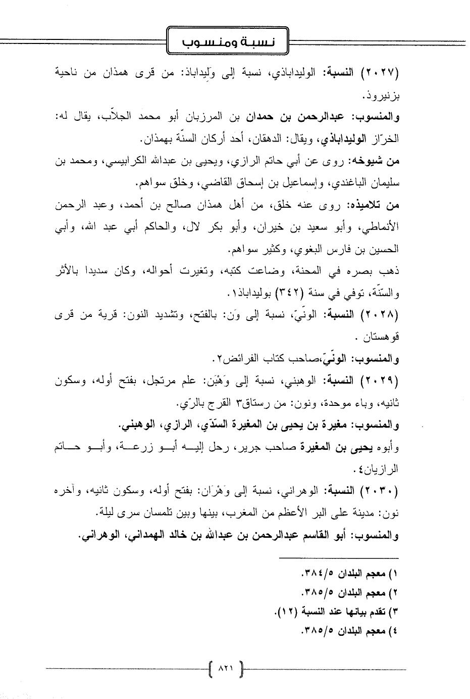 (2029) النسبة: الوهبني، نسبة إلى وَهْبَن: علم مرتجل، بفتح أوله، وسكون ثانيه، وباء موحدة، ونون: من رستاق (¬3) القرج بالرّي.