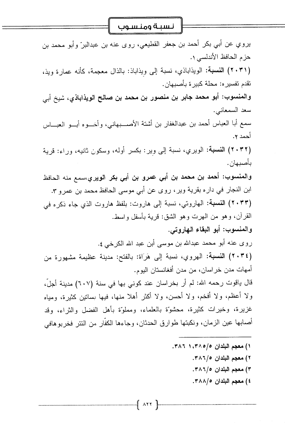 (2034) النسبة: الهروي، نسبة إلى هَرَاة: بالفتح: مدينة عظيمة مشهورة من أمهات مدن خراسان، من مدن أفغانستان اليوم.