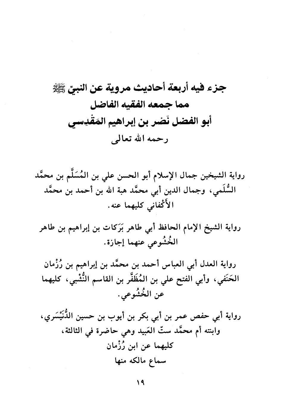كتاب أربعة أحاديث مروية عن النبي صلى الله عليه وسلم لأبي الفتح المقدسي