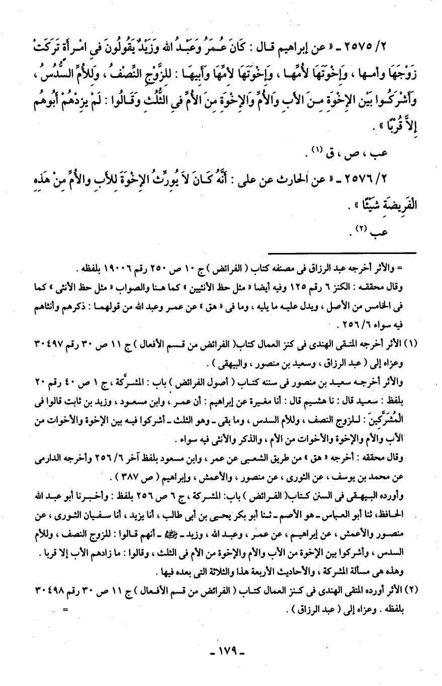 (¬2) الأثر أورده المتقى الهندى في كنز العمال كتاب (الفرائض من قسم الأفعال) جـ 11 ص 30 رقم 30498 بلفظه. وعزاه إلى (عبد الرزاق). =